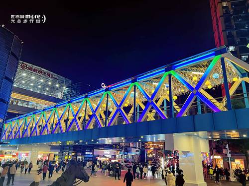 光谷步行街上,集中了大量的百货公司、餐饮娱乐场所,是武汉的一个时尚区域,也是当地时尚达人扎堆逛街的地方,步行街从西到东分别是美式、西班牙、北欧和英伦四大建筑群,展现了不同的异域风情。在步行街游玩,除了购物,你还可以走进杜塞尔多夫酒吧街区,一品欧式美酒;至罗马凯撒广场,回忆悠久欧洲文明。整条步行街上,座椅、雕塑、街头小品,每一小细节,都将与周围的建筑风格相吻合,展现了不同的异域风情。每到夜晚,步行街的入口广场的大型彩色激光发射群,将这里的夜空幻化出美妙的奇观。整条步行街的地板上,安装上不规则彩色发光灯管。从空中或者高处俯瞰,就像一条发光的银河。